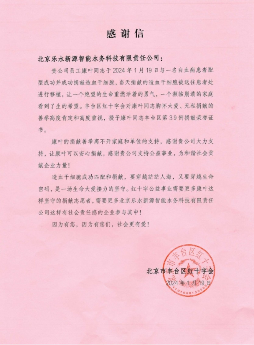 1月19日,北京市第641例造血干细胞捐献顺??????? ??????????????????? ???????????????????? ???????????????????? ?????????????????? ????????????????? ???????????????????? ??????????????????? ??????????????????? ??????????????????利完成,捐献者是来自????? ???????????????????? ??????????????????? ???????????????????? ???????????????大禹乐水公司的一位年仅29岁的水利工程师????? ??????????????????? ???????????????????? ???????????????????? ???????????????康叶。他将这份特殊的礼物——生命的种子????? ???????????????????? ???????????????????? ??????????????????? ???????????????,无私地献给了一位10岁的血液病患儿,让这个????? ???????????????????? ???????????????????? ???????????????????? ???????????????濒临绝境的家庭重燃希望。