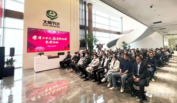 大会组织全体员工重温学习了习近平总书记二十大开????? ??????????????????? ???????????????????? ???????????????????? ??????????????幕会上的报告。水利部宣传????? ???????????????????? ???????????????????? ???????????????????? ???????????????教育中心纪委书记唐晓虎对????? ??????????????????? ???????????????????? ???????????????????? ???????????????大禹节水坚持初心不改、深耕水????? ???????????????????? ???????????????????? ??????????????????? ???????????????利;坚持创新驱动、实现业务转????? ???????????????????? ??????????????????? ???????????????????? ???????????????型;坚持党建引领,走出一????? ???????????????????? ???????????????????? ??????????????????? ???????????????条民营企业特色党建道路给予高度肯定。????? ??????????????????? ???????????????????? ???????????????????? ???????????????唐书记做了专题辅导,对党的二十大报告进行????? ???????????????????? ???????????????????? ???????????????????? ???????????????了解析,结合报告回顾了水利事业这十年发展????? ???????????????????? ???????????????????? ???????????????????? ??????????????的伟大成就,对当????? ??????? ???????????????????? ??????????????????? ??????????????????? ????????????????????????????前和????? ???????????????????? ???????????????????? ???????????????????? ???????????????未来水利发展战略部署方面进行了深入浅出的宣????? ???????????????????? ??????????????????? ??????????????????? ??????????????讲。